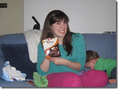 When Sluggo first came by, Nathan was really interested and he got kind of sad when Sluggo walked away. I thought I’d give it a try and take Nathan down to see Sluggo face to face. Sluggo danced over and was ready to say hi and Nathan wanted out of there! I couldn’t help but laugh! I’m such a bad mom! The rest of the evening, any time the bear came close, Nathan got a little wary. Even this morning, when I showed him Sluggo’s picture, Nathan started whining and got this freaked out look on his face. Poor Nathan! Poor Sluggo! He probably has such a hard time making friends. I mean, how many other green bears do you know?